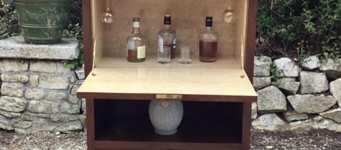 Epoque : 20ème siècle Style : Art Déco Etat : Parfait état Longueur : 80 Hauteur : 139 Profondeur : 40 Prix: 1.200 € 00 Très agréable bar de salon en acajou moucheté, d’époque Art-Déco. Il ouvre par un abattant découvrant un intérieur en érable moucheté pour la présentation des verres et quelques flacons. De chaque côté un support pour suspendre…